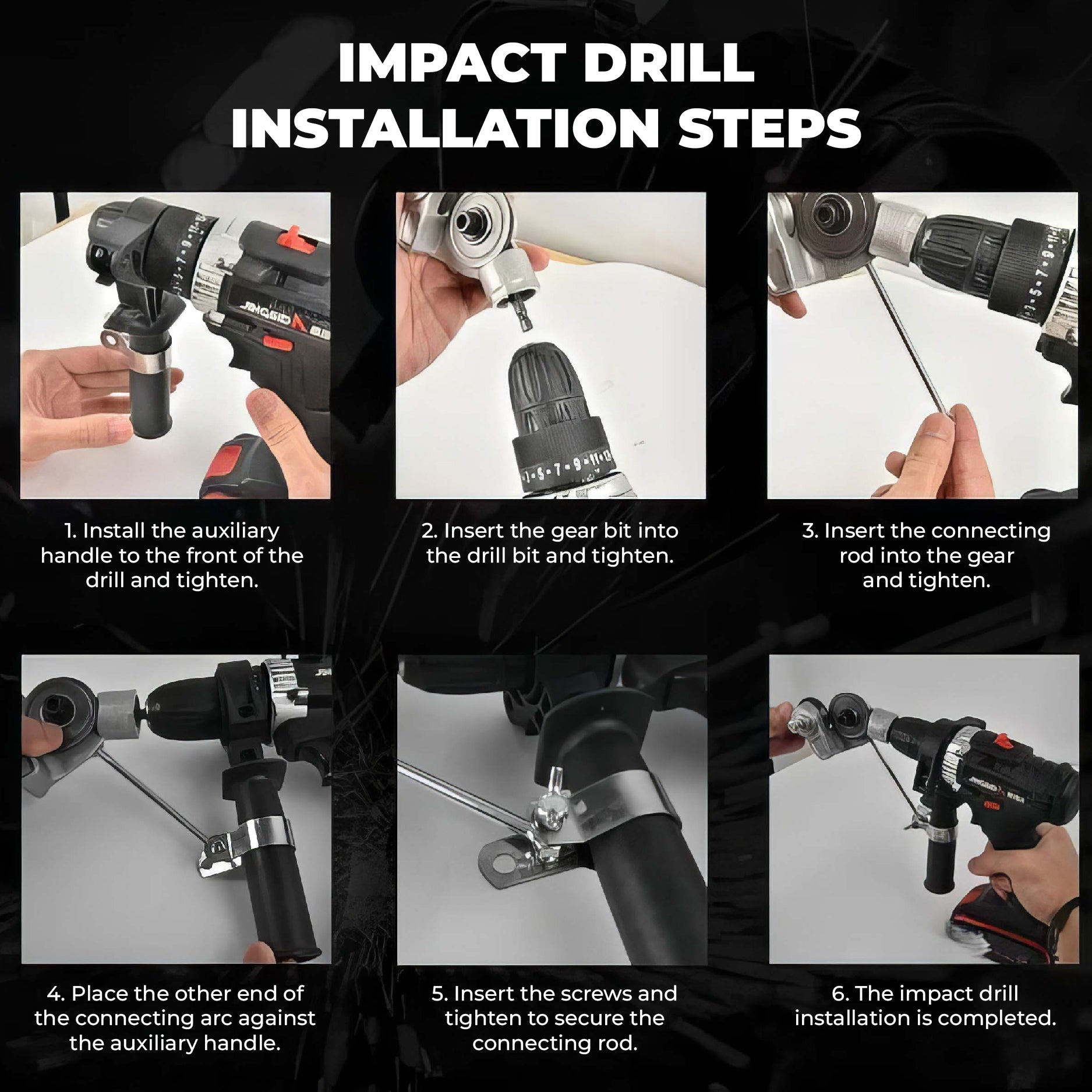 1) Attach & Secure: Connect the Titanium Drill Nibbler to your drill’s chuck and tighten firmly. Its universal-fit design ensures instant compatibility with most electric drills.